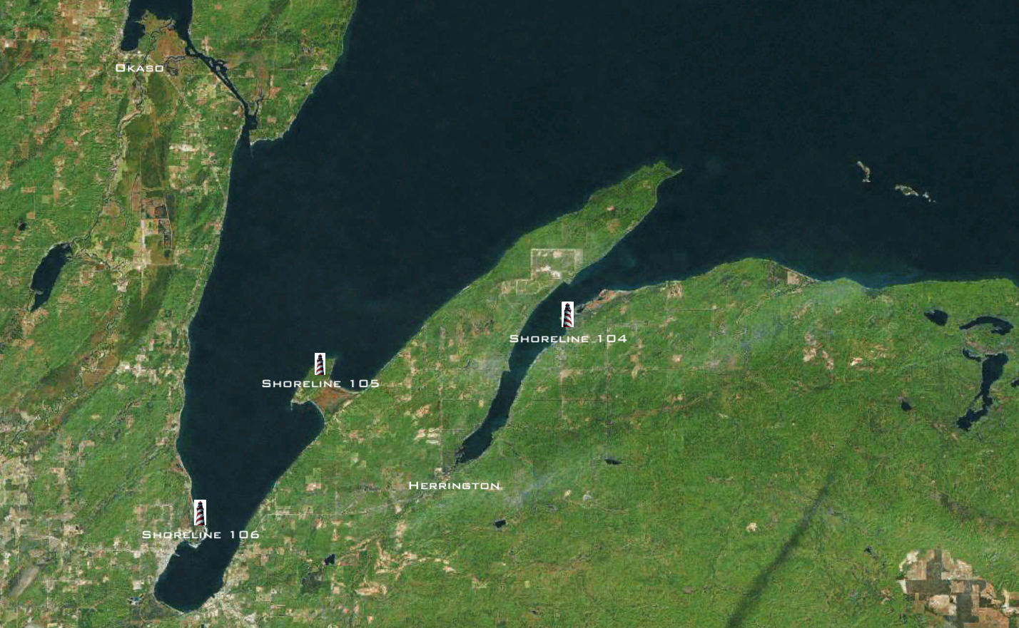 The best location to get a photograph is about 100 feet off shore. It's possible to get Shoreline 106 with 105 in the distance.